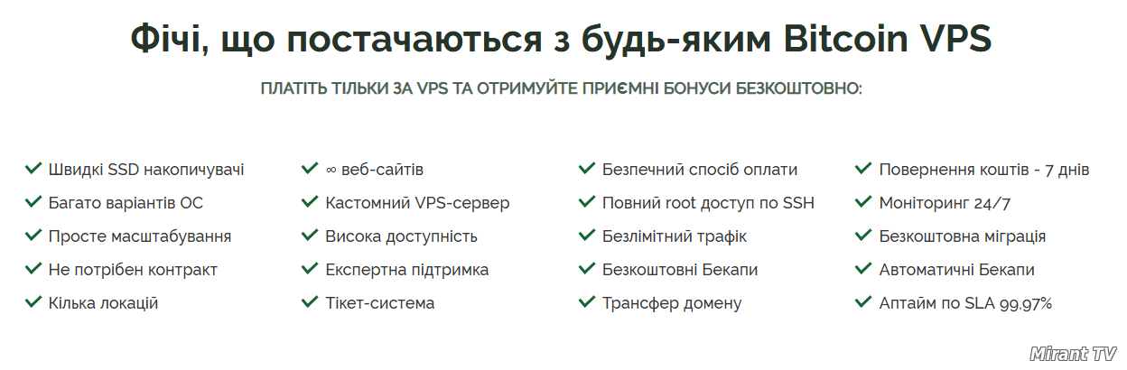 - Гнучкість оплати. Доступний навіть Bitcoin VPS хостинг за допомогою простого та безпечного способу оплати.